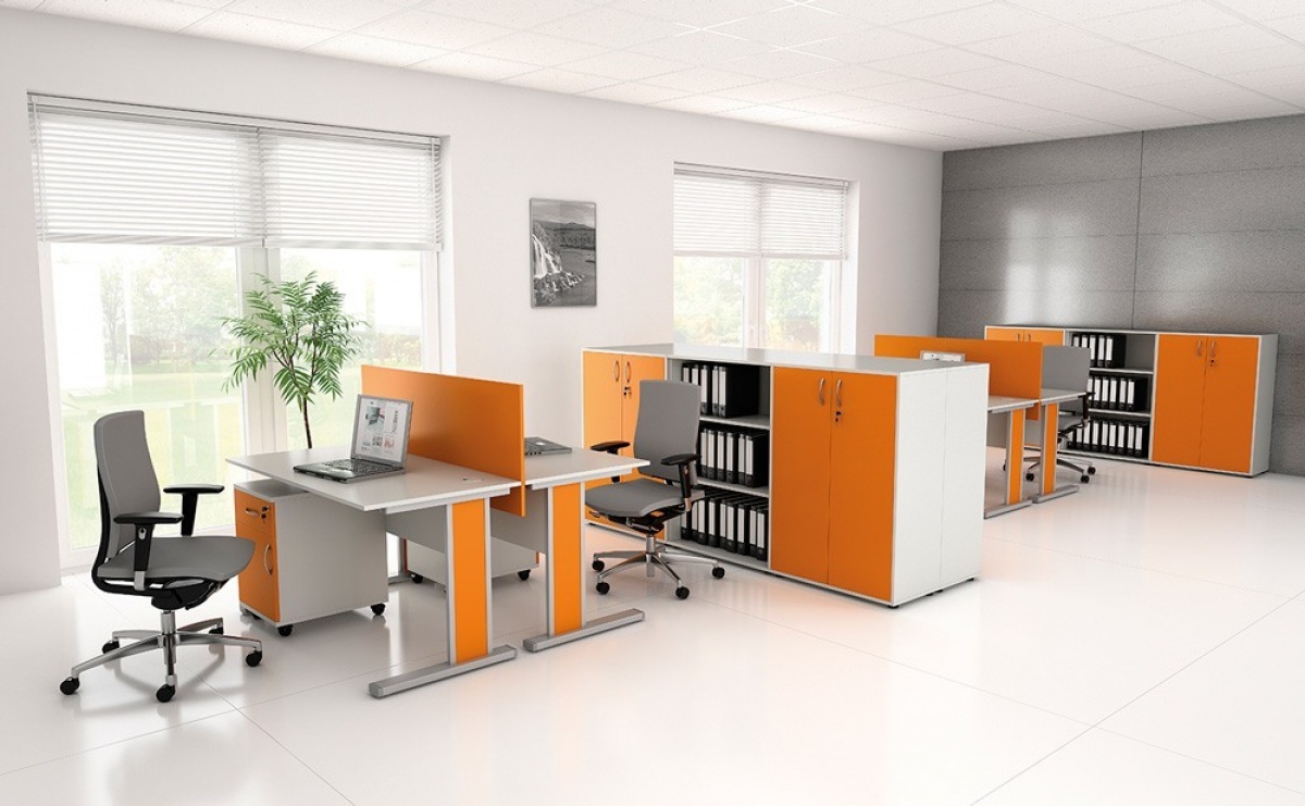 Modułowa konstrukcja wszystkich naszych zestawów mebli biurowych umożliwia dowolne ustawienie i konfigurację poszczególnych brył.