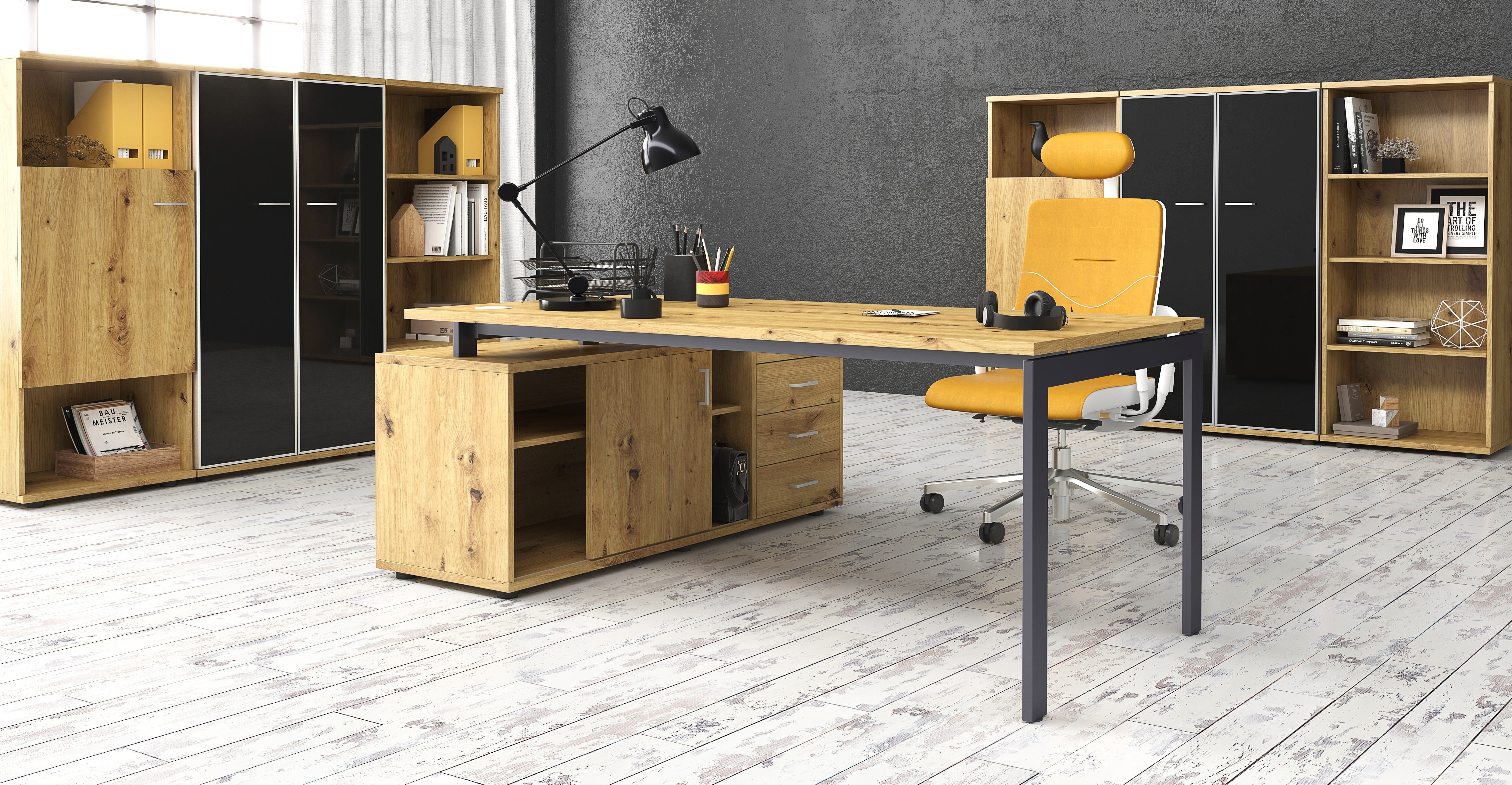 Klasyczna forma? Ekonomiczne meble gabinetowe MARON to zabudowane biurka, szeroka gama szaf aktowych, komód